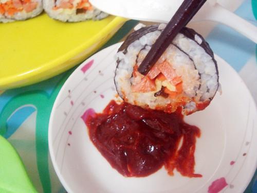 用料 主料:大米 250克 调料: 黄瓜 一根 火腿 一根 鸡蛋 2个 红萝卜 一根虾乡稻大米小寿司的做法1.首先正蒸虾乡稻大米饭,准备好胡萝卜,香肠,鸡蛋片,咸菜。并且都切成条状!还有紫菜片,寿司帘(…