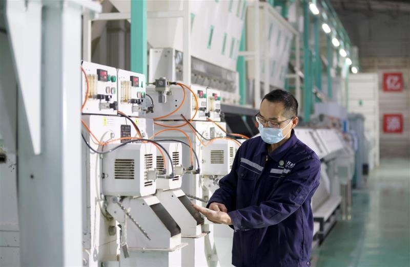 3月20日,湖北虾乡食品股份有限公司的工作人员在大米自动化生产线巡查生产情况。该公司是国家农业产业化重点龙头企业,日可处理稻谷500吨以上。公司长期与省农科院等科研院所合作,将籼稻与粳稻复配选育稻种后推广,采取稻虾生态种养模式,在潜江9个乡镇以及周边监利、公安、天…