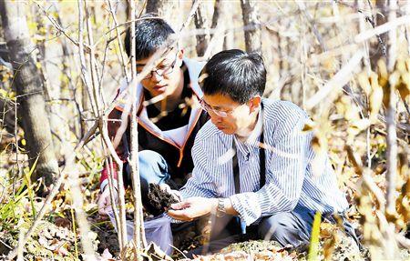 科考队员采集火山岩大米种植地区的土壤进行研究
