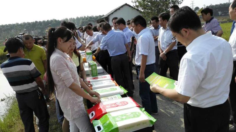 省领导正在观看虾乡稻大米